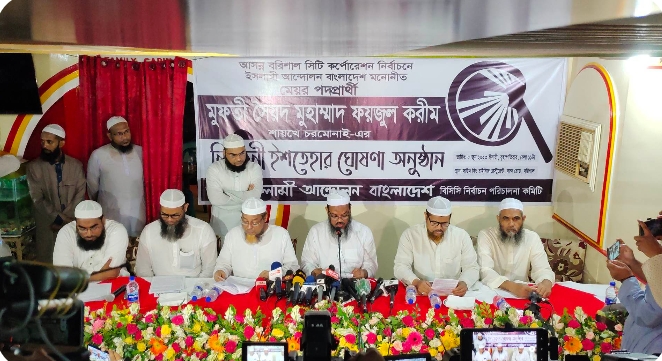 বরিশাল সিটি কর্পোরেশন নির্বাচনে জাতীয় পার্টি ও আওয়ামী লীগের প্রার্থীর পর এবার ইসলামী আন্দোলন বাংলাদেশ এর হাতপাখা প্রতীকের প্রার্থী মুফতি সৈয়দ মুহাম্মাদ ফয়জুল করীম ১৭ দফা ইশতেহার ঘোষণা করেছেন।