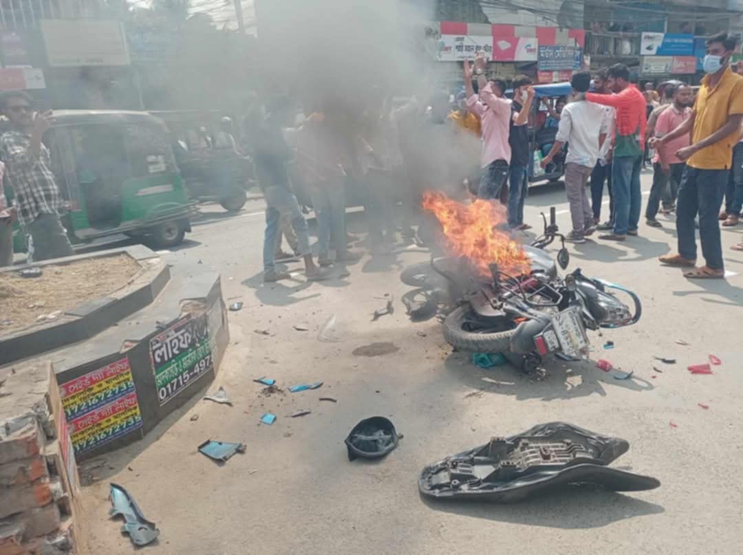 বরিশাল আদালতের সামনে সাংবাদিককে পিটিয়ে আহত ও মোটর সাইকেলে অগ্নিসংযোগ।।