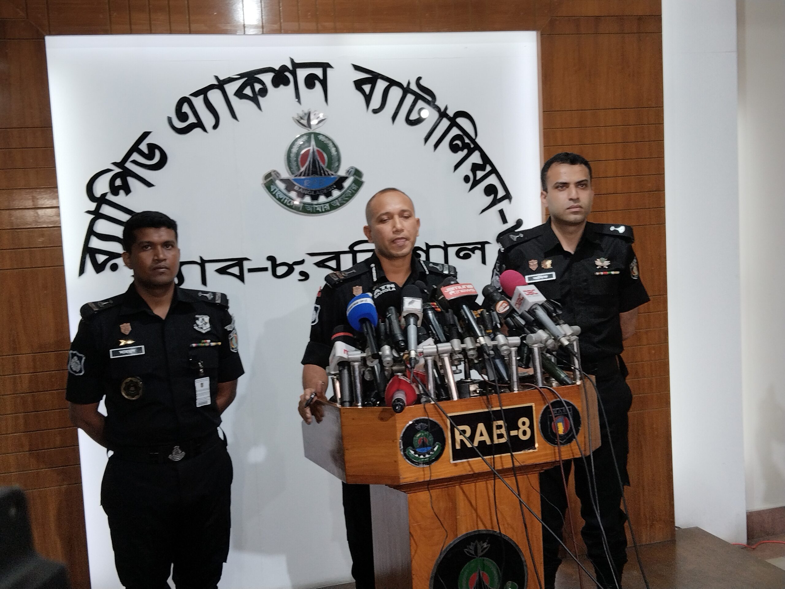 আজ বিকেল ৩.৩০ মিনিটে বরিশালের রুপাতলী র্যাব-৮ সদর দপ্তরের অধিনায়ক লেঃ কর্নেল নিসতার আহমেদ সংবাদ সম্মেলনে করে বিষয়টি নিশ্চিত করেন।