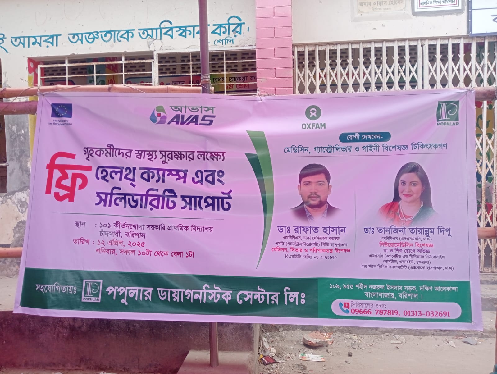 নগরীর ১৫১ কীর্তনখোলা সরকারী প্রাইমারি স্কুল প্রাংগনে শতাধিক ১২ এপ্রিল,২০২৫ তারিখে (১২০ জন) গৃহকর্মীর সাস্থসেবা নিশ্চিতে হেলথক্যাম্প ও ওষুধ সুবিধা প্রদান করা হয়েছে। অক্সফাম ও ইউরোপীয় ইউনিয়ন এর আর্থিক সহযোগিতায়, আভাস বরিশালে গৃহকর্মীদের জন্য একটি প্রকল্প বাস্তবায়ন করছে, তারই ধারাবাহিকতায় এই হেলথক্যাম্প অনুষ্ঠিত হয় পপুলার ডায়াগনিস্টিক সেন্টার লিমিটেড এই কার্যক্রমে বিশেষজ্ঞ চিকিতসক এবং লজিস্টিক সাপোর্ট দিয়ে সহায়তা করে। ডাক্তার রাফাত হাসান; মেডিসিন,লিভার ও পরিপাকতন্ত্র বিশেষজ্ঞ এবং ডাঃ তানজিনা তারান্নুম দিপু; নিউরোমেডিসিন বিশেষজ্ঞ ও মা ও শিশু রোগে অভিজ্ঞ এই হেলথক্যাম্পে অংশগ্রহন করে।